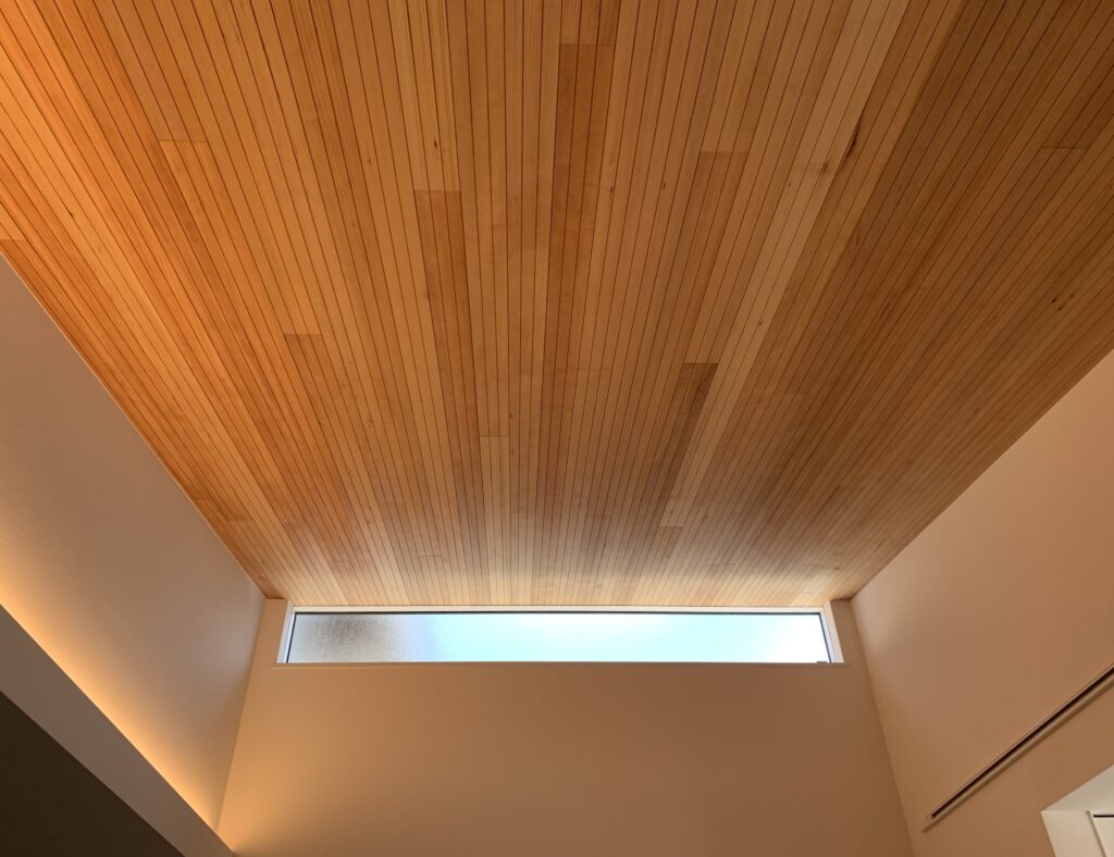 この勾配天井はどうしてもダウンライトで穴だらけにして欲しくなかったので、